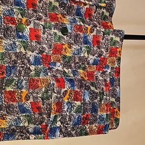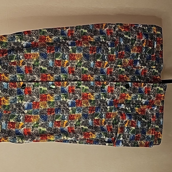 Funky Little Homemade Mini. Buttons Down Front. 2 Functional Pockets. Waist is 26 Inches. Length 24 Inches.