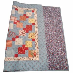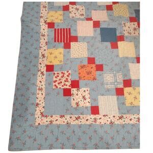 Homemade Patchwork Style Quilt Handmade Turquoise Blue Multicolor Home Decor