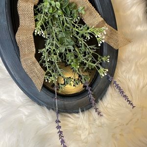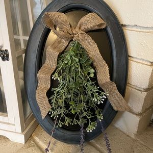 Refurbished wall decor. This cute rustic piece was once a drab mirror. Chalk painted and then added some dark teal for fun. The lavender and greenery ties it all together to make a nice accent piece for any home. Perfect for wall art or lean up anywhere to add a pop of color. All items are one of a kind and never duplicated.