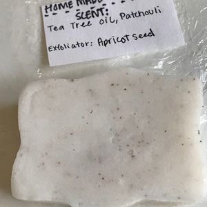 Handmade body soap made with savon soap base and essential oils, blended with apricot seed for exfoliation. This bar is slightly smaller than a traditional bar of soap.