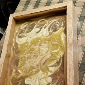 Made with Olive oil, Sunflower oil, Hemp seed oil, Coconut oil, Mango Butter, Shea butter, processed with Sodium Hydroxide, you pick your scent Various Esstional oil different batches. Sold in single bars 6 dollars each. Each bar weighs 5 to 6 ounces
