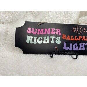 Homemade Summer Nights Ballpark LightsSign.Designed by Lizzy'sDesign'sShe takes orders go to her FB page.She can design what want.Really nice signMaterial Chalkboard, Vinyl, twineReally Cute Hand it in that man caveOr Girl Cave