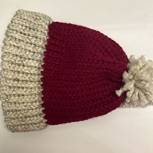 Homemade Wool & Acrylic Knitted Cranberry and Wheat Winter Hat Teen/Adult/Medium