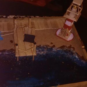 Beach scene made out of epoxy,with beach and lighthouse