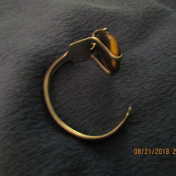A homemade FORK bracelet made with a REAL silver fork!!! A nice Tigers eye stone is inside the FORK