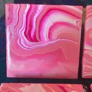Homemade coasters. Mid modern century theme. Set of four. These coasters are 4” x 4”. So unique and would add a touch to any home or outdoor patio table.
