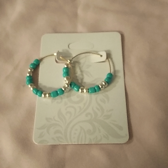 Homemade teal and silver hoop earrings! Have not been worn! Trying to get them off my inventory!
