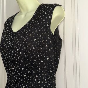 Homemade/handmade black polyester sleeveless dress with white floral print
