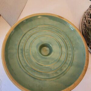 It is round shape and glossy green finish of the ceramic material -