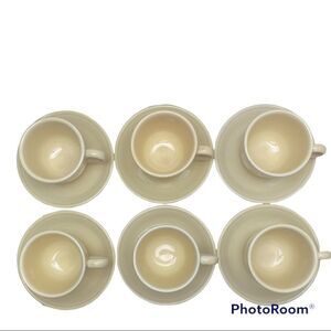 Homer Laughlin Fiesta Ware YELLOW Flat Tea Coffee Cup and Saucer Set Lot. Includes 6 Coffee Cups and 6 Saucers in excellent condition, no damage. Made in US, Ready to ship!