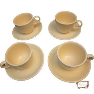 Homer Laughlin Fiesta Ware YELLOW Flat Tea Coffee Cup and Saucer Set Lot