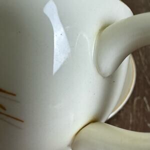 Good used condition. Signs of wear typical with age/use. It does appear that the handle has been repaired at some point, where to gold accent on cup rim- see pictures.