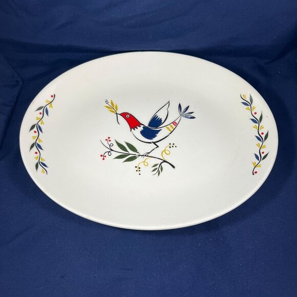 Homer Laughlin Rhythm Bird Pattern Oval Serving Plate 12.5" Vintage Ceramic Dish