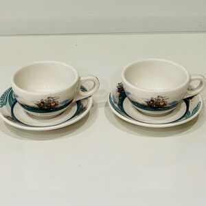Homer Laughlin Two Cups and Saucers vintage ocean scene rare find