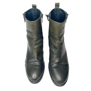 Homers Artesian Green Leather Chelsea Dual Zipper Ankle Boots Size 40/US 9