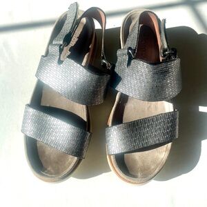 Elegant sandals by Homers Artisan. Features a silver textured pattern. Beautifully made in Spain. Highly-regarded brand!