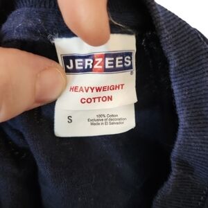 This shirt is in greatbshape, like new. Dark blue with white graphic, no stains or holes.