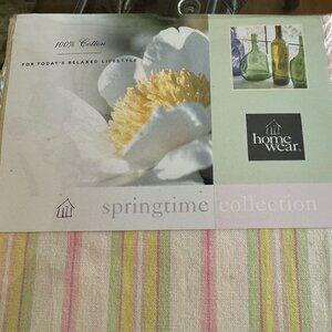 Homewear Cottage Garden Striped 70" Round Tablecloth & 6 Matching Placemats.
