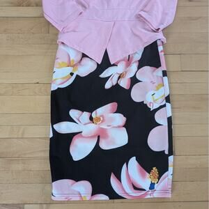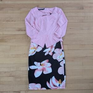 Homeyee Dress Size S Pink Floral Long Sleeve Straight Knit