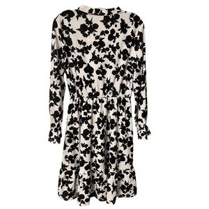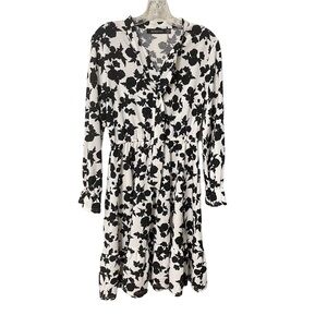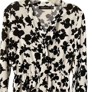 Homeyee Women's Black & White Long Sleeve V- Neck Floral Short Dress Size M