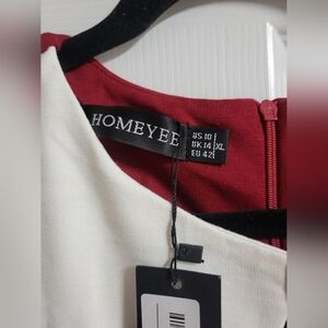Homeyee Womens Elegant Burgundy and White Polyester Spandex Dress Size 10