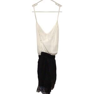 Hommage Los Angeles ~ Women's White & Black Sheer Romper w/Lace ~ Size Medium