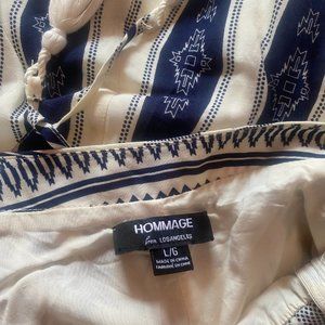 Navy and white cotton sundress. Adjustable spaghetti straps with tie back detail. Side zip.