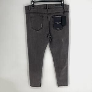 Homme + Femme NEW Skinny Jeans Mens Sz 40 Black Gray Logo Stripes Zipper Ankle