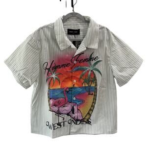 Homme + Femme Private Island Button Down White Large HFSS202474-3