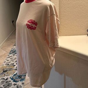Homme + Femme Unisex S Retro Ringer Graphic Logo Tee Shirt White Red 100% Cotton