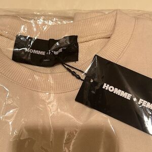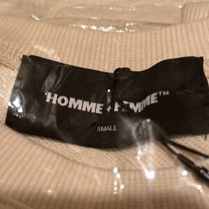 Homme + Femme Unisex S Relaxed Fit Crewneck Sweatshirt Solid Beige 100% Cotton