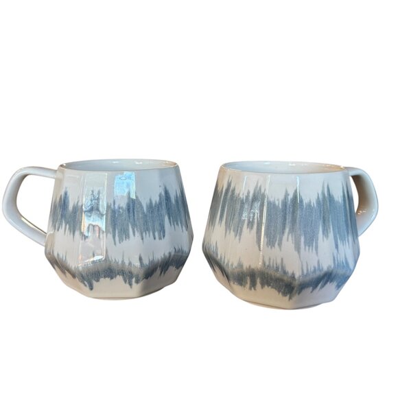 Homvare Porcelain Mugs Set Of 2 Cream Blue Gray Glaze 10 oz EUC