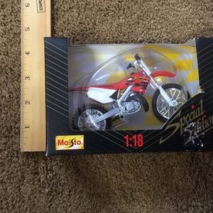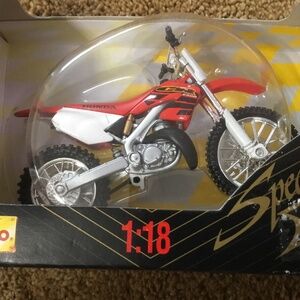 Honda CR 250R - Maisto 1:18 Special Edition. This motorcycle is on a1:18 scale. Box is 4x6