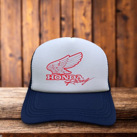 Honda Racing Mens Trucker Hat Navy Snapback Motorcross Drag Race Daytona Cap