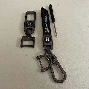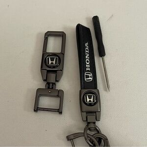 Honda Logo Key Fob Keychain in black Leather and Metal Keychain Set of 2 NWT