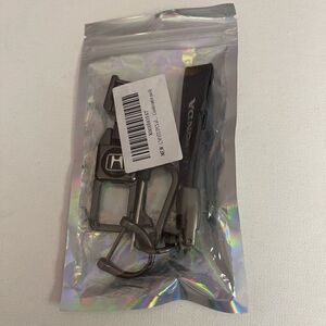 Honda Logo key fob Keychain in Black Leather and Metal Keychain NWT