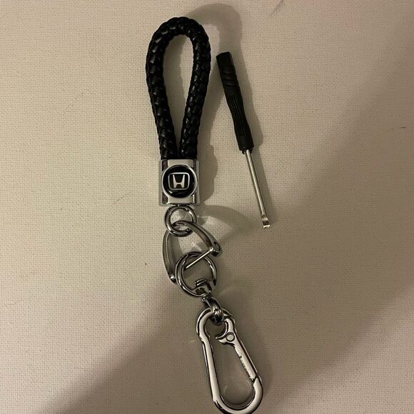 Honda Logo Key Fob Keychain in Black Leather NWT
