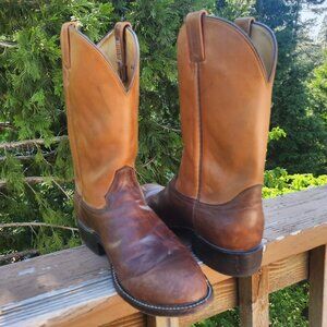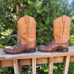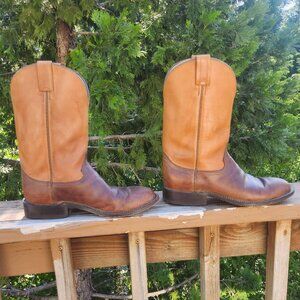 Hondo Boots size 9D. These cowboy boots are in good condition, see pictures for size and condition. Color brown and camel tan. From a cat and dog friendly home.