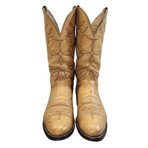 Hondo Men's Yellow Cowboy Boots Size 9.5D Westen Resoled With Rubber Soles