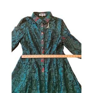 Hone Year Mini Shirt Dress Women's XL Green Floral Lace Lined Cotton Blend