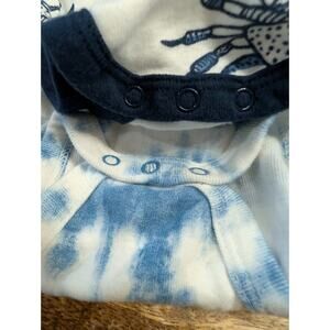 The Honest Baby Size 3-6 Months 2pc Bundle Lot Bodysuit in Blue Crab is a stylish and comfortable one-piece outfit for babies. Made from soft cotton material, this bodysuit features a side snap closure for easy dressing and undressing. The tie-dye pattern and blue color add a fun and playful touch to the overall design, making it a unisex option for both boys and girls. Perfect for keeping your little one snug and cozy while also looking adorable.