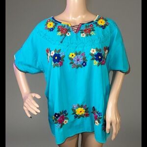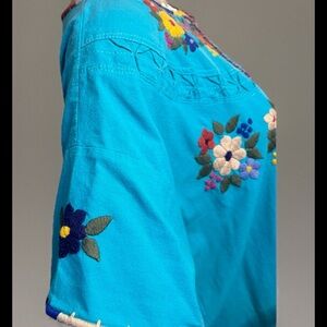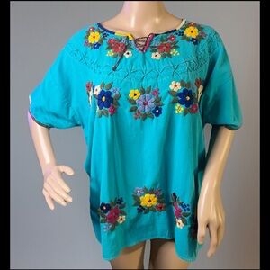 Honest Cotton Flower Embroidered Top AquaArtsy Boho