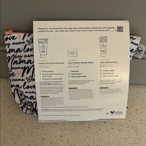 Honest New Mama Care Essentials set with a stylish pouch. Features black and pink design.