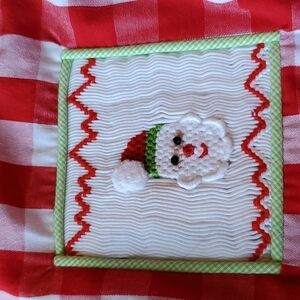 Honesty Christmas smock Santa red & white. Size 9 month preowned good condition