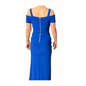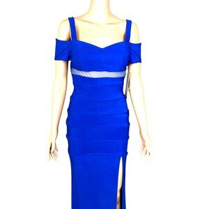 Honey And Rosie Royal Blue Off-Shoulder Gown Sweetheart Neckline & Slit NWT