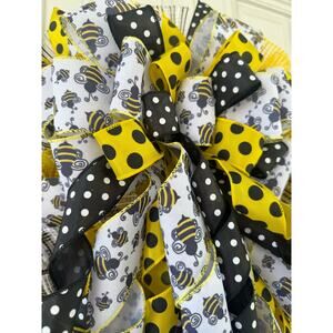 Honey Bee Ribbon & Mesh Spring Summer Wreath, Bumblebee Front Door Hanger