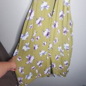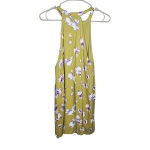 Honey Belle Floral Print Halter Neck V-Neck Mustard Yellow Romper Medium Rayon