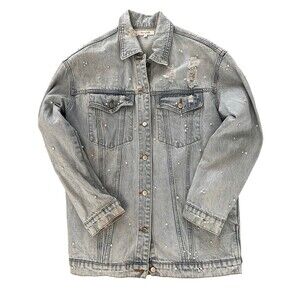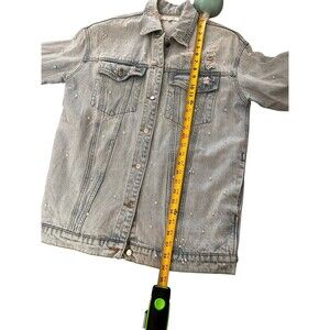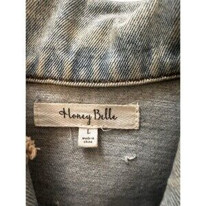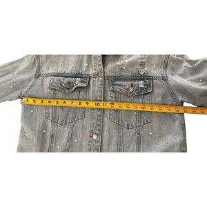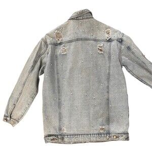 Honey Belle Women’s Distressed Denim Jacket With Pearl Accents Thrashed Grunge L