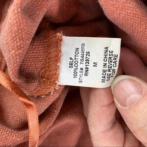 Coral peach color has frayed ends around the pockets and button area with large brown buttons. Women's size medium. See photos for details and measurements. Excellent pre-owned condition.