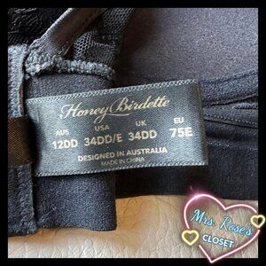 Honey Birdette Belinda Black Bra, Size US 34DD/E, UK 34dd, EU 75E, AUS 12DD
